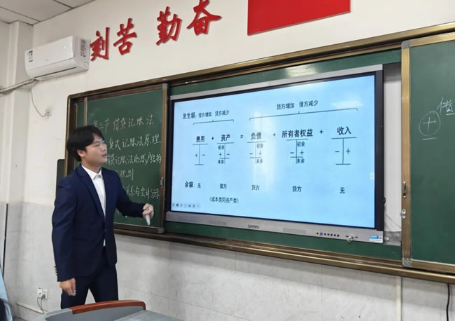 随后,授课教师会计专业教师王艺进行了自我复盘。他谈到,本节课教学目标明确,核心在于让学生理解并掌握复式记账的基本原理,为后续学习打下坚实基础。